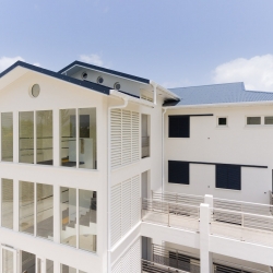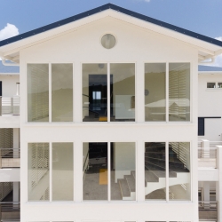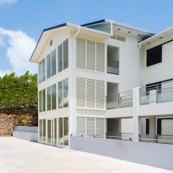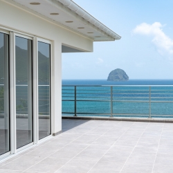 Equipé par nos soins, l'immeuble comprend des Baies vitrées coulissantes composées de 2 ou 3 ventaux en aluminium, résistants aux intempéries et permettants une vue panoramique. Des Panneaux lames Z, ayant comme fonction de couper les rayons du soleil, sans pour autant couper la luminosité dans la pièce. Des Volets roulants et coulissants, à la fois esthétiques et pratiques, actionnables à l'aide d'un bouton poussoir. Et enfin, l'immeuble est doté de fenêtres avec vitrage de 8mm, sécuritaires et garanties étanches : des Fenêtres à Soufflet (s'ouvrant par le haut), des Chassis fixes en aluminium, et des Hublots fixes et basculants en aluminum.