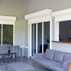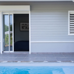 Elle comprend, nos Jalousies Security en Aluminium à lames ventilantes, une nouvelle génération de jalousies, plus sécuritaires et parfaitement adaptée aux exigences climatiques ultramarines. Une Porte d'entrée tiercée en équerre, comprenant 2 ventaux, élégante et résistante, aussi bien aux intempéries qu'aux infractions. Des Volets roulants et battants en aluminium, à la fois esthétiques, pratiques, et qui protègent du soleil tout en régulant la température intérieure de la pièce. Et enfin, la Villa Jacques est également équipée de Coulissants à Galandage, des baies-vitrées coulissantes composées de 2 ventaux en aluminium, résistantes aux intempéries et qui s'ouvrent entièrement, permettant ainsi une vue panoramique.